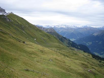 Nach dem Frühstück tat sich der Himmel etwas auf und ein grosser Teil der Gruppe machte sich auf die Wanderung zum Jäggisch Horn. Diese verlief eigentlich problemlos obwohl der Boden durch den Regen teilweise etwas rutschig war. Das letzte Stück konnte ich leider nicht mitgehen, da der Weg über einen Grat führte und meine Höhenangst erbarmungslos zuschlug. Aber auch von diesem Punkt aus hatte man eine wunderschöne Sicht ins Prätigau. Der Abstieg verlief zügig und problemlos.